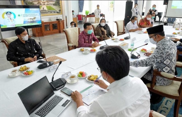 MUARO JAMBI – Bupati muaro jambi, Hj. Masnah Busro, SE., M.Tr.IP. Menghadiri undangan rapat Study banding dibandung terkait dengan penerimaan dan pengelolaan PI 10% dalam pelaksanaan di wilayah kabupaten Muaro Jambi provinsi jambi. Hadir juga gubernur jambi, Al haris dan ketua DPRD provinsi jambi, Edi Purwanto yang disambut langsung oleh gubernur jawa barat, Ridwan Kamil digedung pakuan rumah dinas gubernur jawa barat, Kamis (3/2/22).