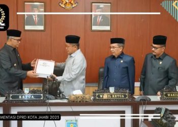 Jambi - Rapat Paripurna DPRD Kota Jambi terhadap pandangan pansus LKPJ Wali Kota Jambi diselenggarakan di Ruang Rapat A DPRD...