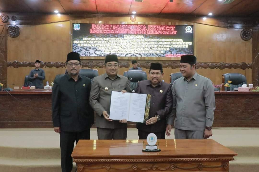 Tanjabbarat – Dewan Perwakilan Rakyat Daerah (DPRD) Kabupaten Tanjung Jabung Barat (Tanjabbar) menggelar Rapat Paripurna Ke empat dalam rangka penyampaian laporan Panitia Khusus II DPRD, penandatanganan berita acara persetujuan bersama antara Pemkab Tanjabbar terhadap raperda Kabupaten Tanjabbar tentang Pajak Daerah dan Retribusi Daerah, Senin (02/10/23).