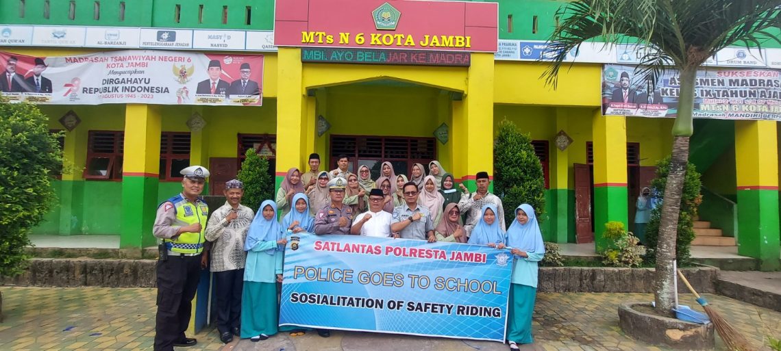 JAMBI- Jasa Rahaja bekerja sama dengan Kepolisian Resort (Polresta) Jambi melaksanakan program sosialisasi keselamatan berkendara dan edukasi hak santunan kecelakaan di Madrasah Tsanawiyah Negeri (MTS N) 6 Kota Jambi.