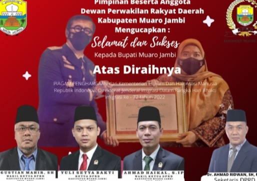 “Kami segenap Pimpinan DPRD Muarojambi mengucapkan selamat atas penghargaan yang di peroleh Pemerintah Kabupaten Muarojambi, ” pungkasnya.