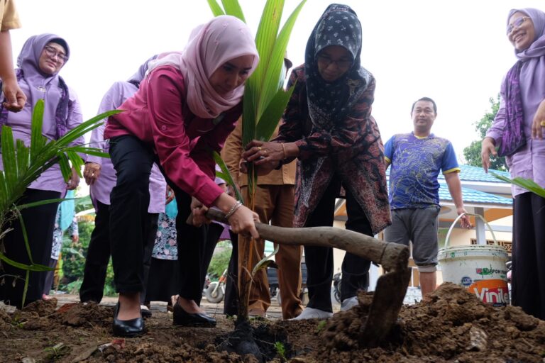 Muarojambi – Ketua Penggerak PKK Kabupaten Muaro Jambi Faradilah Zahara Bachyuni memberikan bantuan bibit pohon kelapa dan pohon duku kepada Desa Muaro Jambi, Desa Tangkit Baru, dan Desa Tanjung Lanjut.