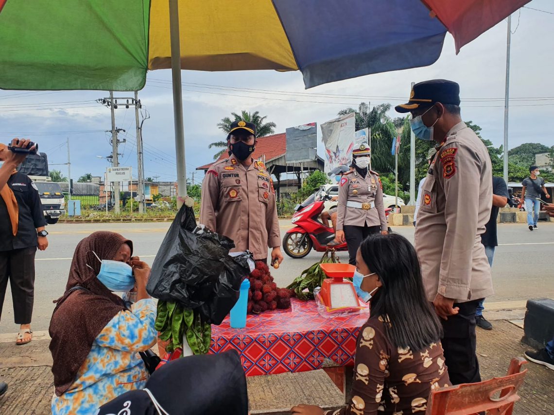 Kapolres Bungo AKBP Guntur Saputro turun langsung ke Jalan Lintas Sumatra tepatnya di Simpang Jambi Kabupaten Bungo memberikan Vitamin kepada pengguna jalan serta ke UMKM, Senin (23/8/21).