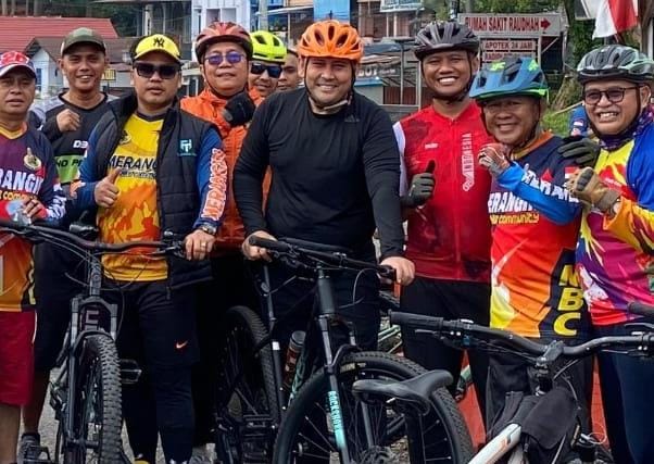 Bangko-Hari libur dimanfaatkan Bupati Merangin H M Syukur bersama Wabup H A Khafid Moein dan Dandim 0420/Sarko Letkol Inf Suyono, untuk bersepeda (Goes) keliling Kota Bangko, Minggu (13/4).