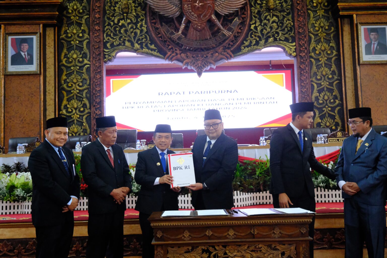 Pada rapat paripurna ini juga dilakukan penandatangan berita acara dan penyerahan LHP BPK. Widhi Widayat menyerahkan LHP kepada Gubernur Jambi Al Haris dan juga Ketua DPRD Provinsi Jambi M. Hafiz.