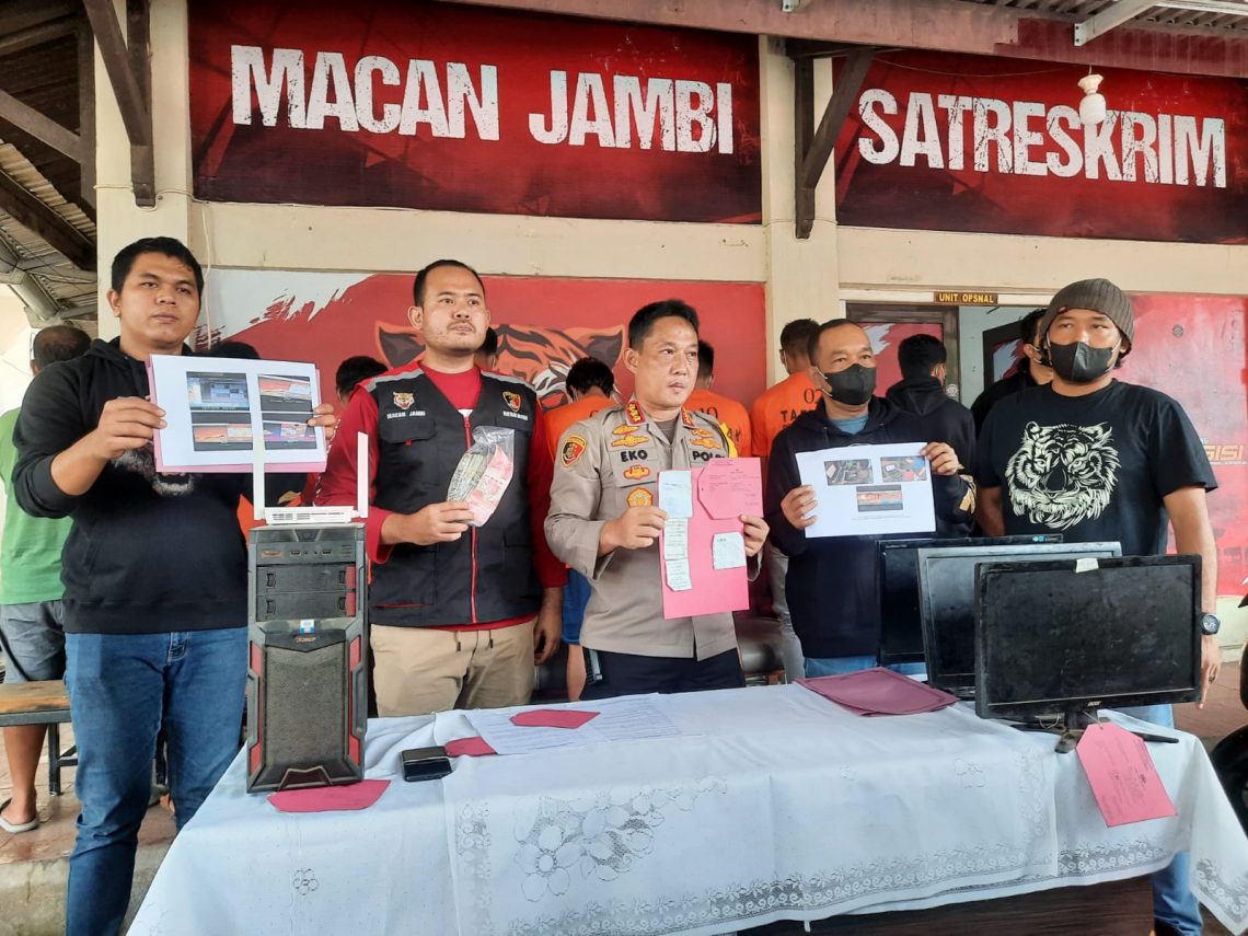 JAMBI – Tim Macan Satreskrim Polresta Jambi berhasil mengamankan delapan pelaku judi online (slot) pada Jumat, (19/8/2022) malam.