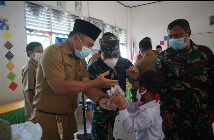 Hal ini dilakukan guna menghindari kerumunan. Selain itu pula Sekda Budi Haerono bersama Tim Satgas Covid-19 jaga melaksanakan vaksin terhadap beberapa siswa SD Negeri 45 desa senaung yang tidak jauh dari lokasi tersebut.