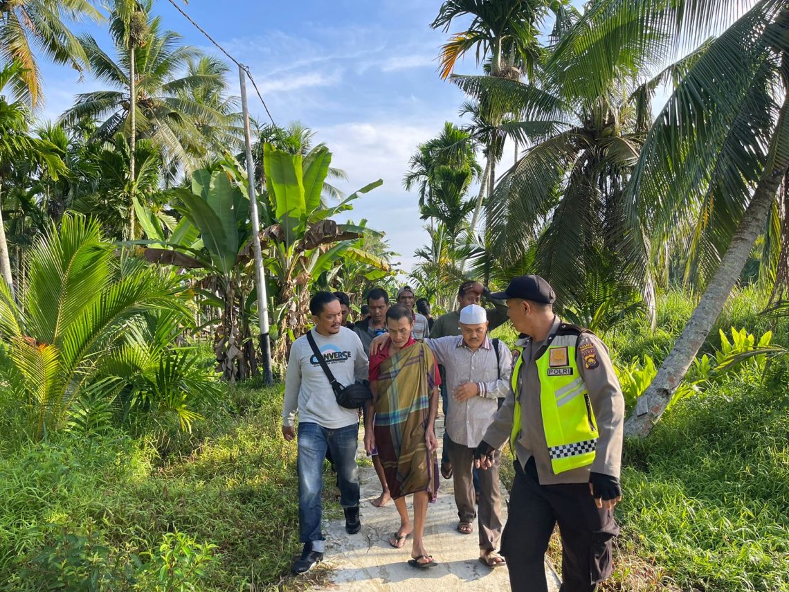 Baru sekitar pukul 07.30 wib berhasil meringkus pelaku di belakang rumah anaknya yakni Bain. Dan dirumah korban terdapat sebilah parang bercak darah.