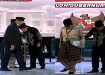 Jambi - Kesantunan seorang yang muda kepada yang tua, diperlihatkan Al Haris ketika debat kandidat calon Gubernur (Cagub) Jambi, Swiss ...