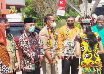 Merangin - Bupati Merangin H Mashuri didampingi Asisten I Setda Merangin H Abd Gani, mendapat hadiah istimewa buku bertajuk ‘Palisi ...