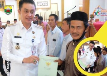 Pj Bupati Muaro Jambi Serahkan Sertifikat Hak Atas Tanah untuk Pelaku UMKM