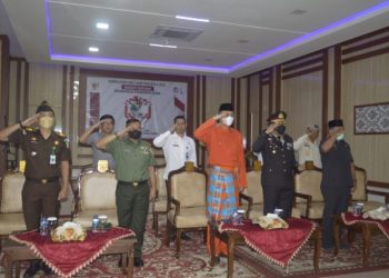 MUARO JAMBI - Pj Bupati Muaro Jambi Bachyuni Deliansyah bersama jajaran forkompinda di lingkup Kabupaten Muarojambi menggelar zoom meeting bersama ...