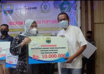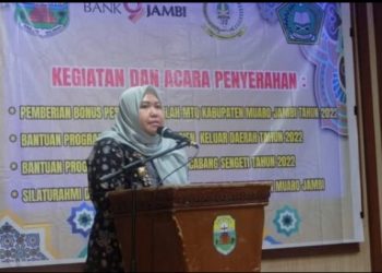 MUARO JAMBI - Bupati Muaro Jambi Hj. Masnah Busro, SE, MTr.IP hadiri sekaligus serahkan bonus kafilah Musabaqah Tilawatil Qur’an Tahun ...