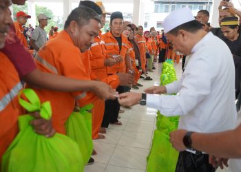 Jambi - Gubernur Jambi Dr. H. Al Haris, S.Sos,MH memberikan bantuan sembako bagi para petugas kebersihan yang ada di Kota ...