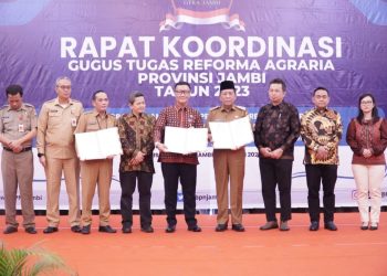 Jambi - Wakil Gubernur Jambi Drs.H. Abdullah Sani, M.Pd.I mengharapkan Rakor Gugus Tugas Reforma Agraria dijadikan momentum untuk menyelesaikan sengketa ...