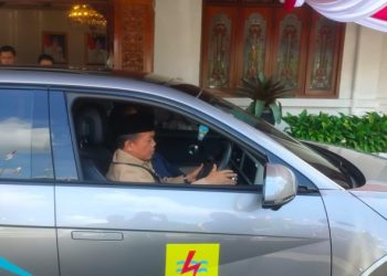 JAMBI - Gubernur Jambi Al Haris berkesempatan menjajal mobil listrik dari rumah dinas gubernur di kawasan Tanggo Rajo menuju kantor ...