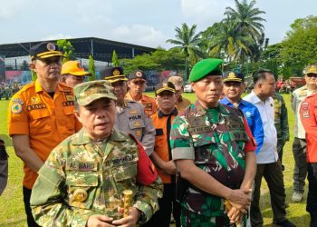 Jambi - Gubernur Jambi Al Haris memimpin apel siaga darurat bencana kebakaran hutan dan lahan (Karhutla) yang berlangsung di lapangan ...