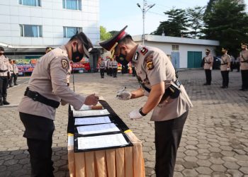 JAMBI - Kepala Kepolisian Resort Kota (Polresta) Jambi Kombes Pol Eko Wahyudi memimpin langsung upacara Serah Terima Jabatan Kabag Ops, ...