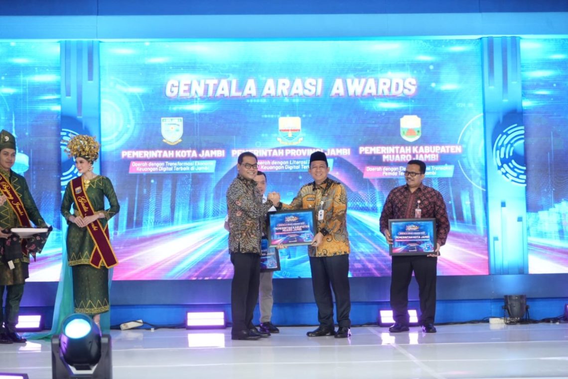 Penghargaan untuk Pemerintah Kabupaten Muaro Jambi tersebut diberikan oleh Bank Indonesia (BI) dalam kategori daerah dengan elektronifikasi transaksi pemda tertinggi di Jambi.