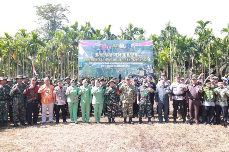 Tanjabbar – Wakil Bupati Tanjung Jabung Barat, Dr. H. Katamso, SA., SE., ME., bertindak sebagai inspektur upacara pada pembukaan kegiatan TNI Manunggal Membangun Desa (TMMD) ke-124 tahun 2025 yang berlangsung di Lapangan Sepak Bola Desa Bram Itam Kanan, Selasa (6/5)