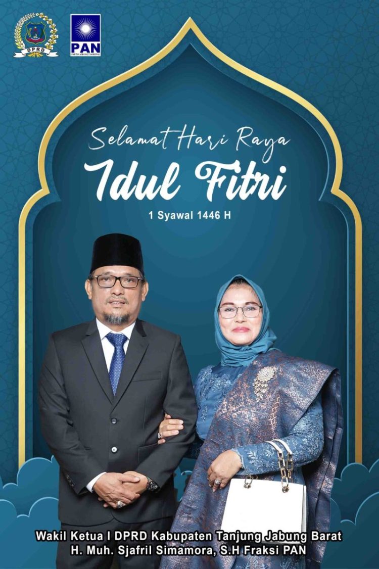 Dalam suasana penuh suka cita, Wakil Ketua I DPRD Kabupaten Tanjung Jabung Barat H. Muh. Sjafril Simamora, S.H Fraksi PAN (Ucok Mora) menyampaikan ucapan selamat Idul Fitri kepada seluruh umat Muslim yang merayakan. Momen kemenangan setelah sebulan penuh menjalankan ibadah puasa ini menjadi ajang untuk mempererat tali silaturahmi dan saling memaafkan.
